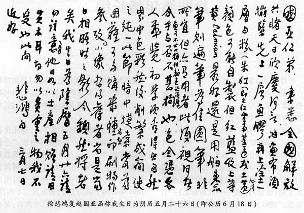 吴作人就给王震回了这样一封信,信中告知王震,徐悲鸿那封信并非写给自己,具体写给谁他也不知,不过已将信件转交给艾中信,请他帮忙查阅。至于那张照片,吴作人非常激动,他在回信中说:“第二函附的照片,我原保存一张,在十年动乱中已失去,希望你给我印两三张,能多印几张更好。因为在此照中尚存有三人,加上给徐悲鸿纪念馆一张。时间可能在一九二九年初。这是南国社在南京第一次公演之后。”