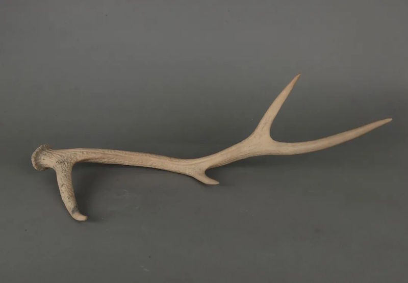 鹿角,新石器时代,澄湖遗址出土,吴文化博物馆鹿角是新石器时代遗址中较为常见的一类骨角质器物。鹿角材料的获取,大致包括两种途径:一是猎取,通过狩猎鹿而获得鹿肉、鹿皮与鹿角等生存资源;二是采集,通常情况下成年公鹿的鹿角会定期脱落、遗落在原野中,先民通过捡拾即可获得。此鹿角出土的遗址位于苏州原吴县车坊镇,在这个新石器时代遗存中,发现房址、灰坑、水田、水井等多种遗迹,其中水井有近1000口,是太湖流域考古发现水井最多的遗址。