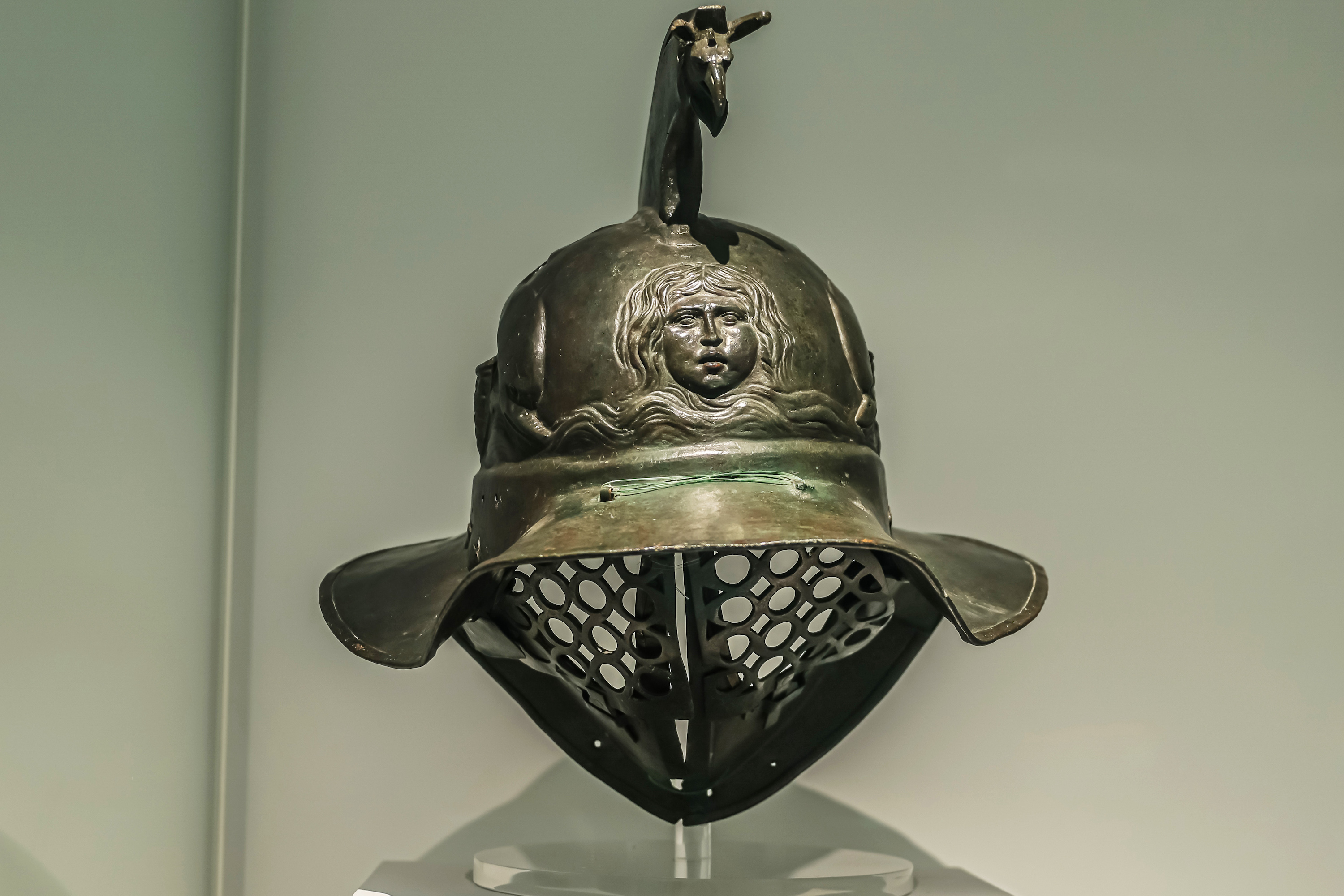 《色雷斯角斗士头盔》青铜公元1世纪,庞⻉那不勒斯国家考古博物馆藏