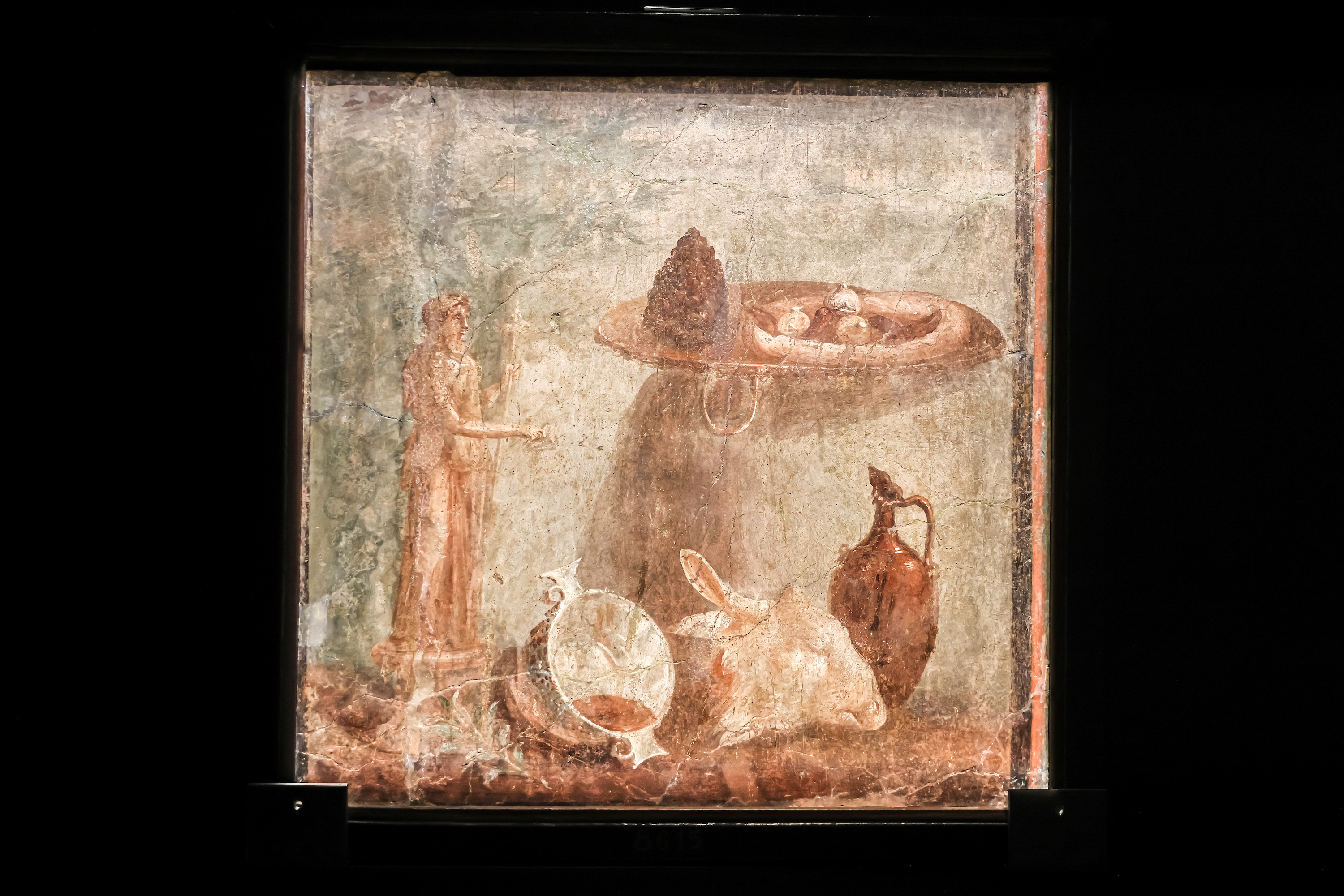 《有酒神雕像和贡盘的静物画》彩绘壁画公元1世纪,赫库兰尼姆那不勒斯国家考古博物馆藏