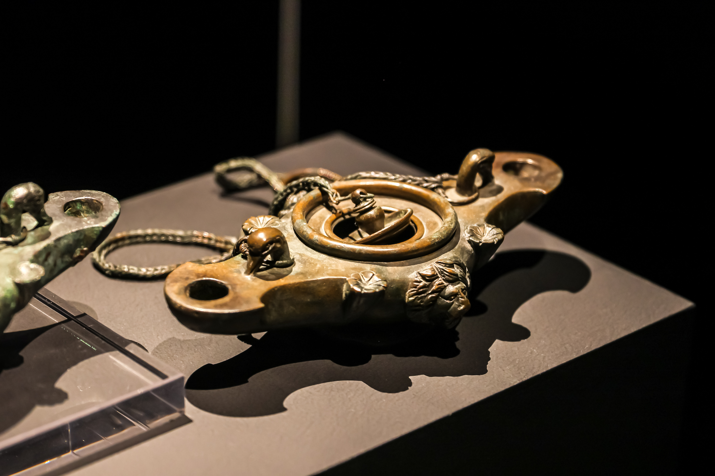 《有狮子头像的双口油灯》青铜公元1世纪,庞⻉那不勒斯国家考古博物馆藏