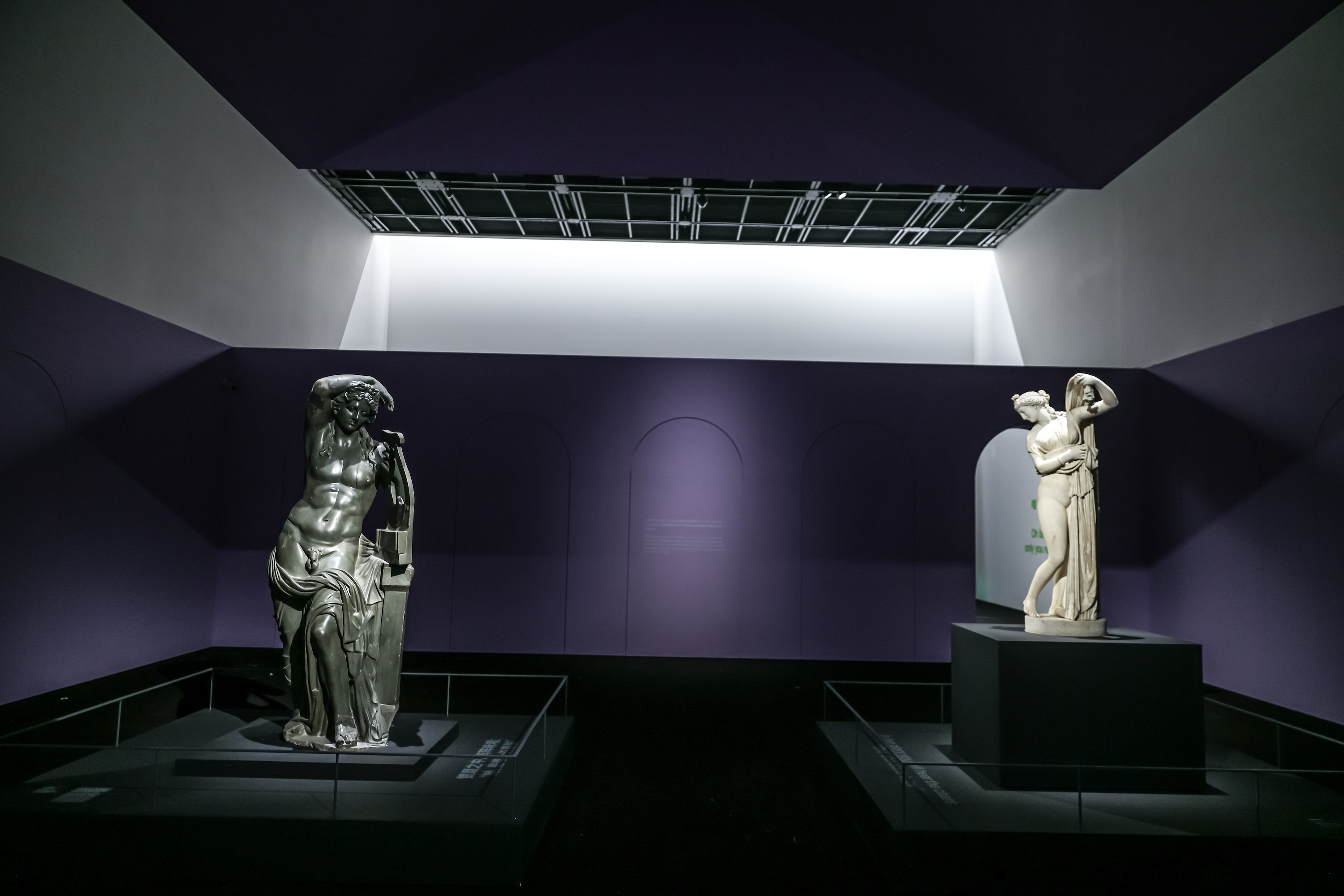 大体量的雕塑,因为有了轻盈的“拱形镂窗”,使观众平添移步换景的观看乐趣。2世纪的大理石雕塑《维纳斯的背影》,透过“镂窗”,遥对黛安娜和雅典娜。