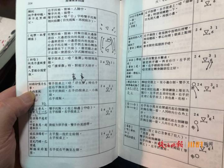 这是一种“笨办法”,一字一句一图一形:剧中人、行当、走位图、服饰、随身道具、唱词念白、身段说明,如何转身,正面还是背面,用符号一一标注、记录。手眼身法步,一招一式,一挥一指,包括脸上的一颦一笑,眼睛的一收一放,全都交代得清清楚楚。