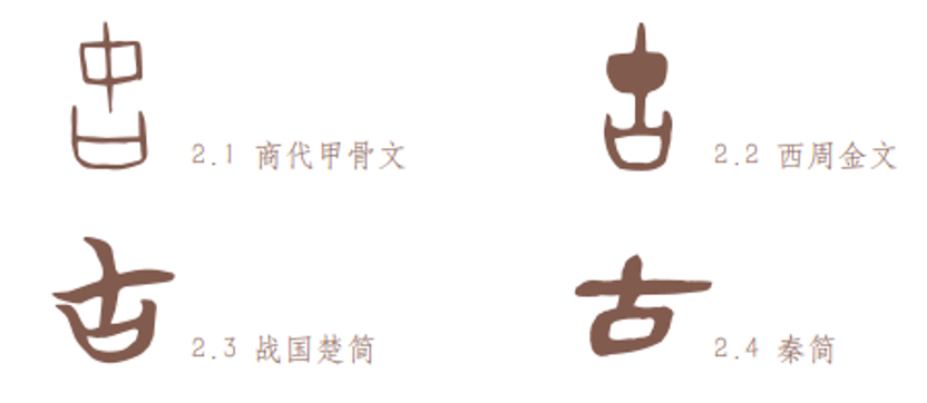 “古”字的演变。一竖画穿过一个方框或墨团这个构件后世不传,但也见于古文字“戎”“博”“盾”之中,从而可以推断出它的来历。