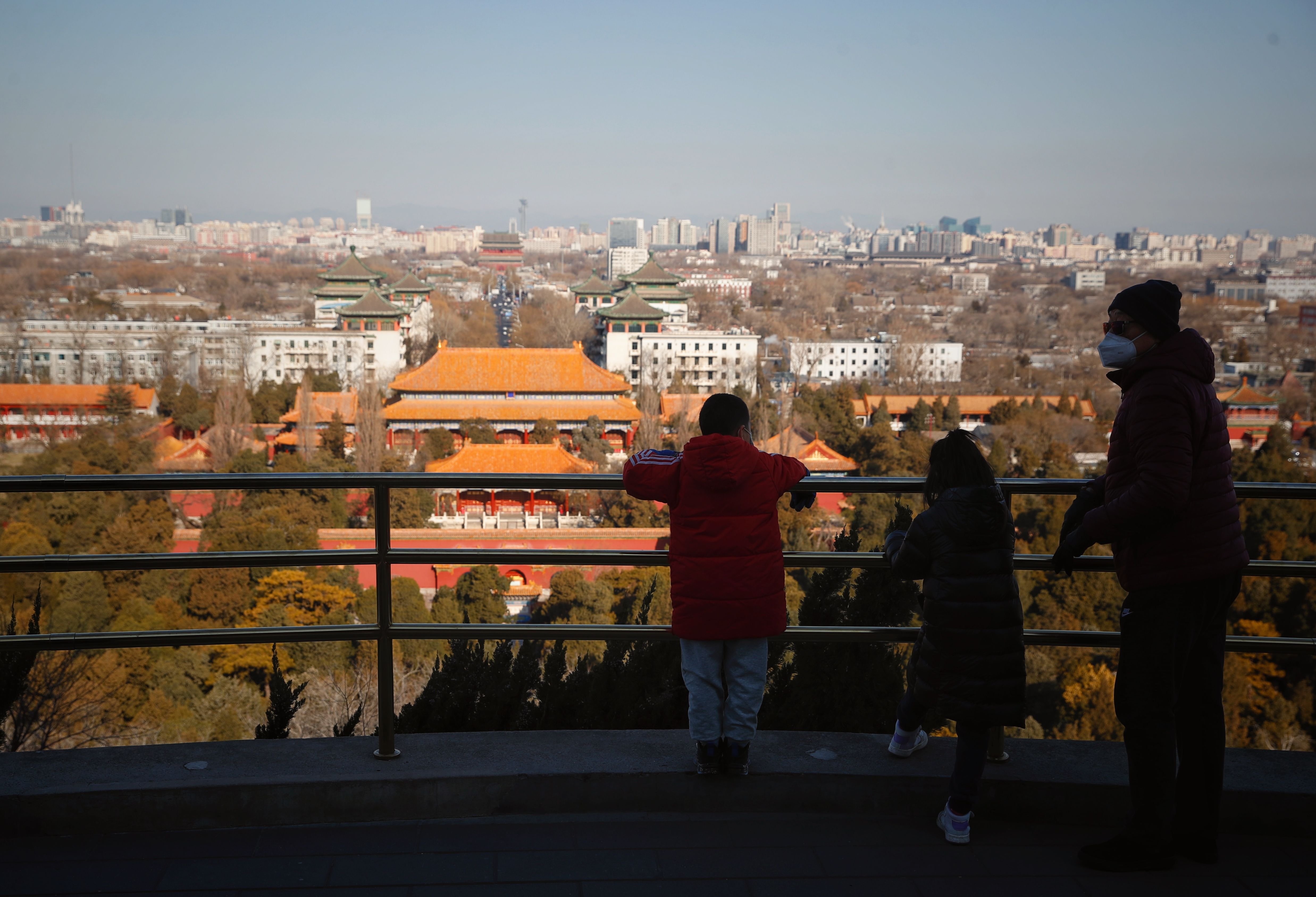 2023年1月1日,景山公园,游客登上万春亭,远眺北京中轴线。新京报记者薛珺摄