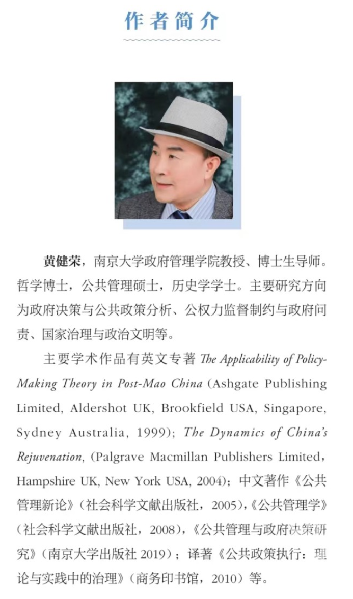 黄健荣,南京大学政府管理学院教授、博士生导师。哲学博士,公共管理硕士,历史学学士。主要研究方向为政府决策能力与决策分析、公权力监督制约与政府问责、治道变革与公共政策分析、国家治理与政治文明等。