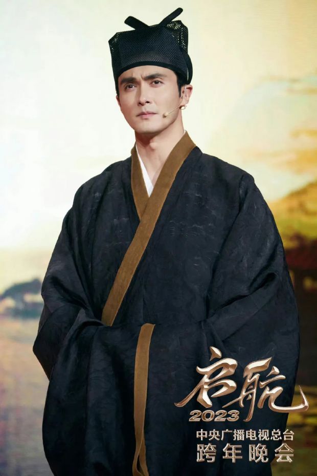 央视节目中的男主,身穿宋服衣袂飘飘。