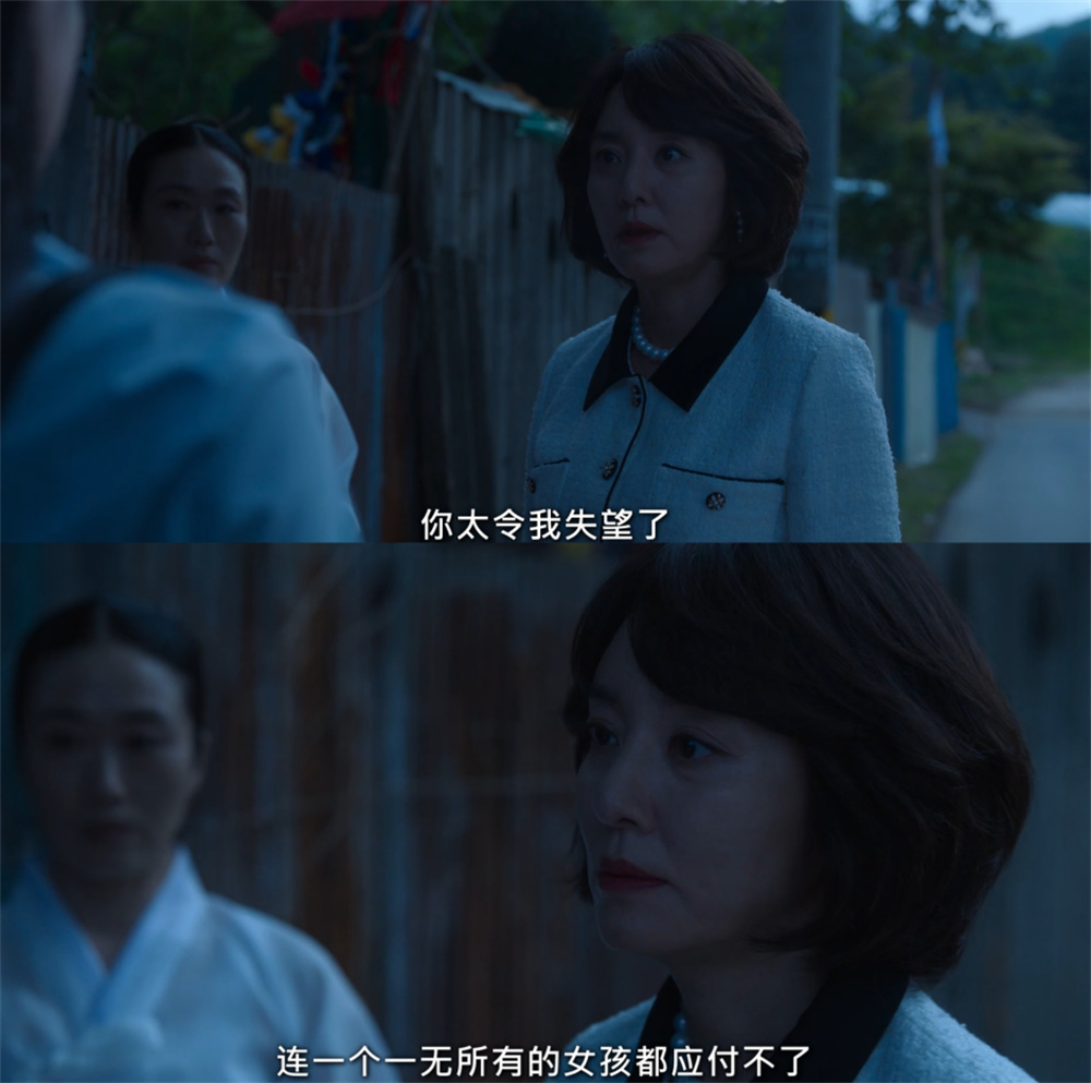 也正因为有经历、有秘密,又如此神秘莫测,她在某些瞬间无意中流露出的那种清冷寂寥的美,反而勾魂摄魄。就比如她与朴妍珍的财阀老公河道英(郑成日饰)的那一个擦肩而过,风吹起文东恩的头发,《花样年华》式的慢镜头以及配乐,以及河道英拉丝的眼神,让人物之间的关系张力十足。黑暗的复仇剧,意外有了金恩淑式的罗曼蒂克时刻。