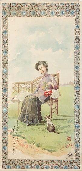 徐咏青于1914年为《时报》创刊10周年绘时装仕女图