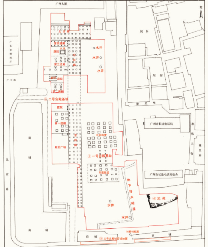 南汉王宫重要遗迹分布图