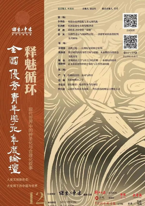 嘉宾:叶祝弟(《探索与争鸣》主编、编审)、郁喆隽(复旦大学哲学学院副教授)、严飞(清华大学社会学系副教授)、余明锋(同济大学人文学院副教授)等
