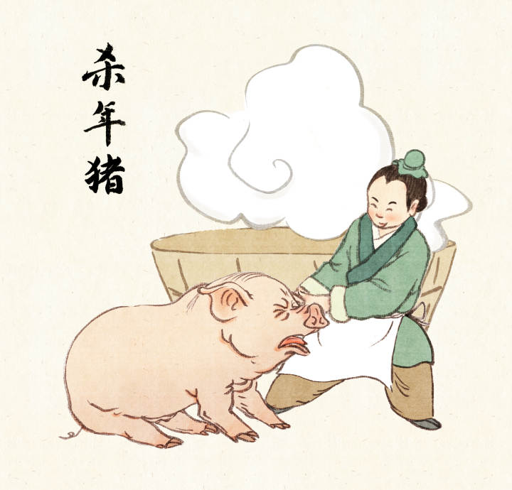 日子进入腊月,似乎过得飞快。年关渐近,村里人置办年货的大戏也就更闹猛了。男人打年糕、吊酒,女人做冻米糖、蒸红豆发糕,忙得不亦乐乎,似乎连空气里都弥漫着除夕夜临近的喜气。然而村里迎年节最具仪式感的就是杀年猪,那猪上断头台的凄厉嚎叫,就是这场年终大戏进入高潮的号角。猪一哀嚎,村里人便兴奋起来,尤其是小孩,会成群结队地跑去看热闹,还不忘带上自家的大黄狗。因为他们知道,看杀年猪不仅能饱眼福,还能蹭吃蹭喝,比看什么都过瘾。