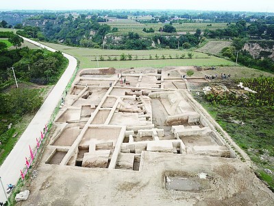 甘肃庆阳西峰西郊的南佐遗址,坐落在黄土高原第一大塬——董志塬上,传说中这里是黄帝部族的重要活动地域,也是以农业著称的周人祖先不窋的老家。南佐遗址发现于1958年,1984—1986年和1994—1996年有过两个阶段的发掘,从2021年开始第三阶段的发掘和调查、勘探工作,基本确认这是一处以仰韶文化晚期大型聚落为主体的遗址,遗址面积在600万平方米以上,可能有外环壕。聚落中部是由9座方形夯土台及其环壕围成的面积约30万平方米的核心区,核心区中部偏北是数千平方米的由“护城河”和夯土宫墙围成的“宫城”。“宫城”中心为主殿,“九台”之外还有多处居住区、夯土台、沟渠水利设施等遗存,出土了大量白陶、黑陶等珍贵遗物和大量水稻,从多个方面显现出早期国家和文明社会的气象。
