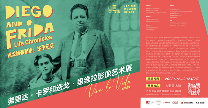 1月2日,由中国对外文化集团有限公司、墨西哥合众国驻华大使馆、迭戈•里维拉和弗里达•卡罗工作室博物馆主办的“生命万岁——弗里达·卡罗和迭戈·里维拉影像艺术展”(迭戈和弗里达:生平纪实)在深圳木星美术馆开展。本次展览是2022年中国与墨西哥建交50周年纪念活动之一,由于疫情原因推迟至2023年1月举办。