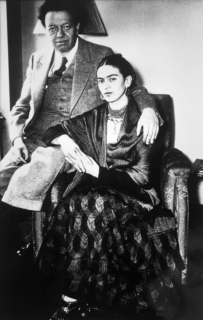《弗里达与迭戈在婚礼当日,摄于科约阿坎的雷耶斯工作室》摄影,厄内斯托•雷耶斯,1929年8月21日,墨西哥城科约阿坎