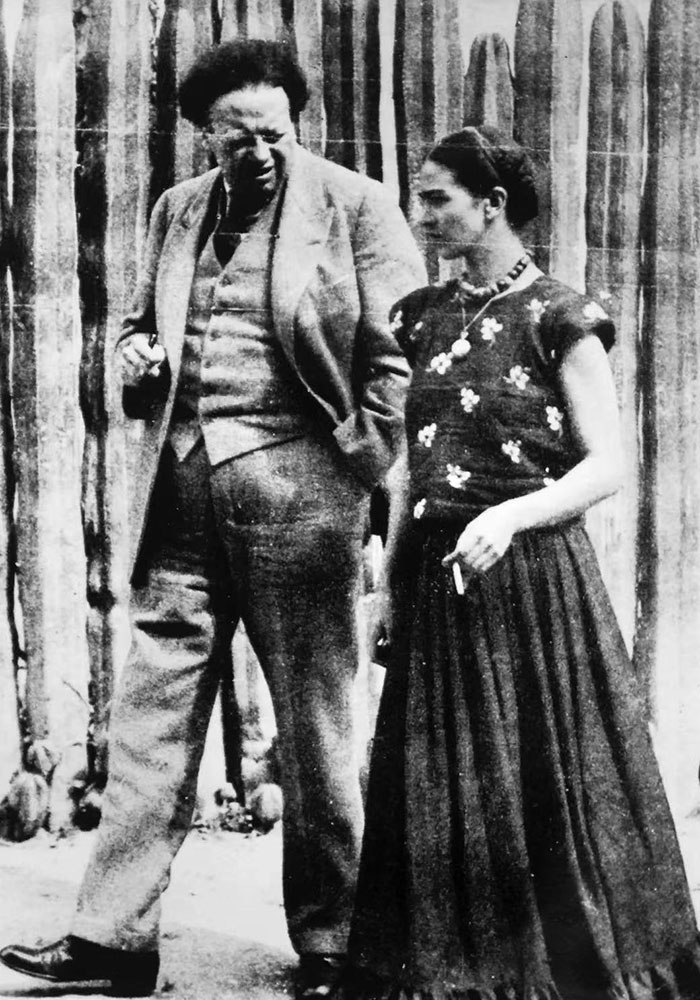 《无题》(迭戈•里维拉与弗里达•卡罗在工作室的仙人掌栅栏前散步)摄影,佚名,1934年,墨西哥城圣安赫尔
