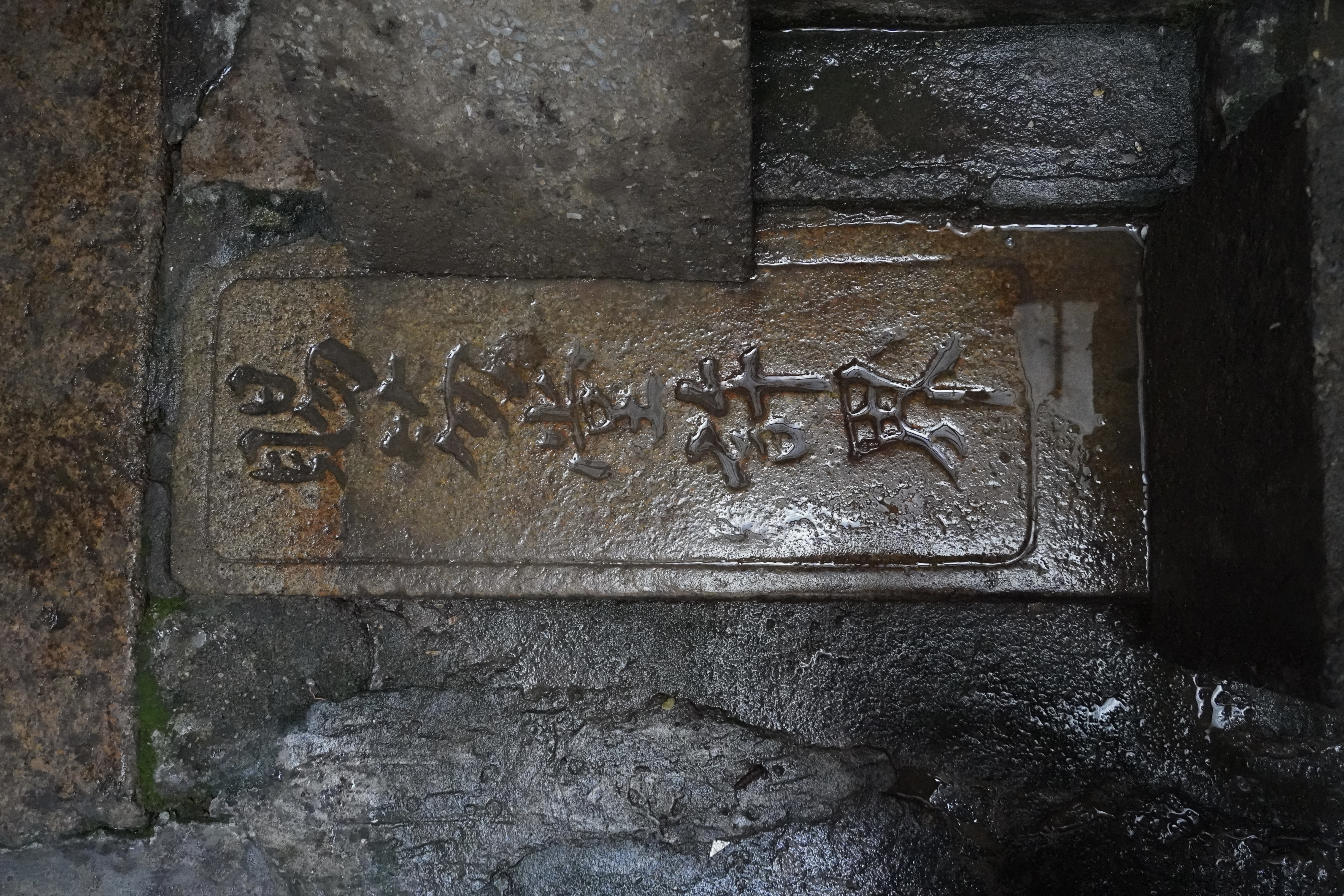 被盖住的“赐笏堂许界”碑,上面石板挪开后露出全貌。澎湃新闻记者邹佳雯图