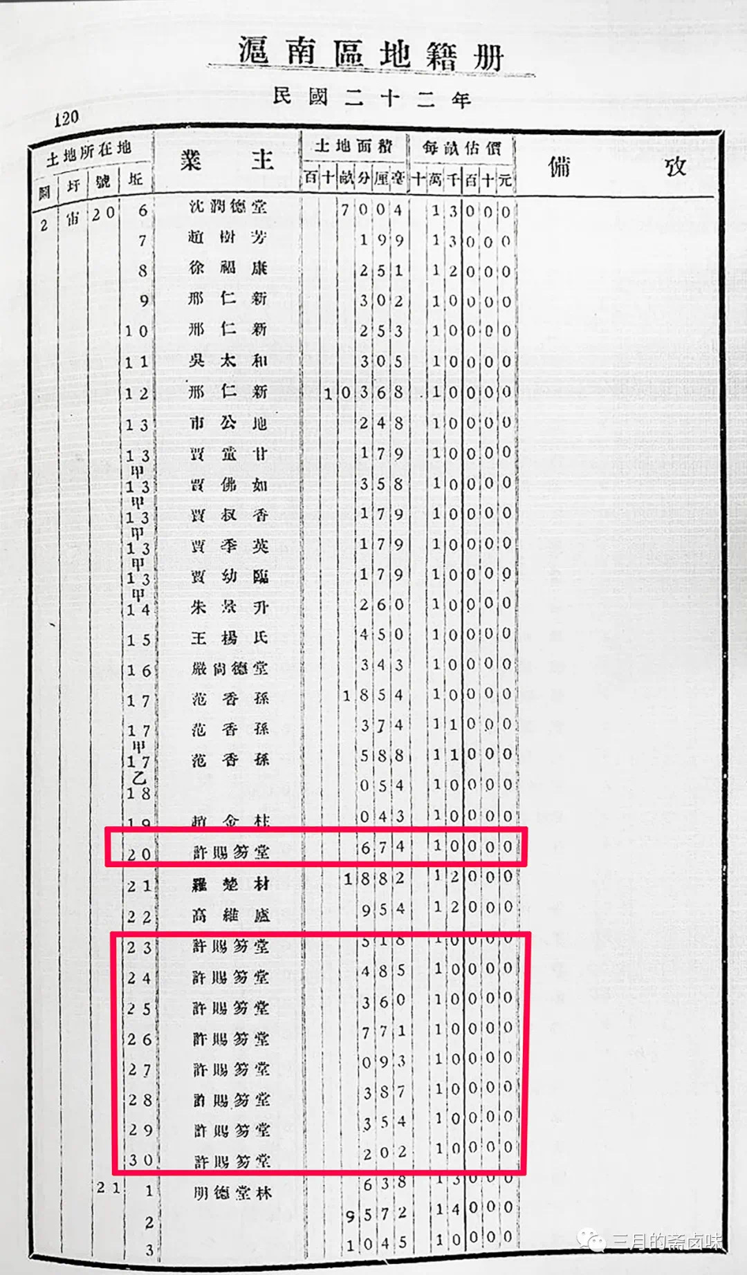 (补充)1933年地籍册图片来源:微信公号“三月的斋卤味”