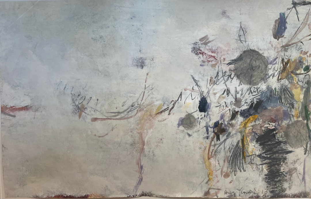 “5号厅的顶面我们保留了120年历史的老木梁,尽管层高不是很高,但是有着独特的沉浸感。展厅内展出了知名抽象艺术家黄渊青大大小小11件手稿。其中几件更是有20余年的历史,是艺术家首次拿出在外展出。”策展人介绍说。