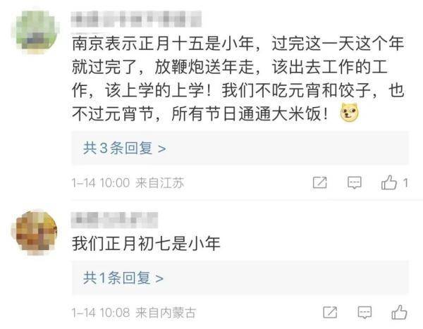 “二十三糖瓜粘、二十四扫房子、二十五磨豆腐……”腊月二十三,是北方的小年,家家户户开始为过大年做准备。但细心的网友发现,在万年历上,有“北小年”“南小年”之分,腊月二十四才是南方的小年。#为什么南北小年不是同一天#,这个问题冲上了热搜。南京,正月十五才是小年,还有网友表示,正月初七是小年。还有网友幽默地表示:年兽从北跑到南需要一天!