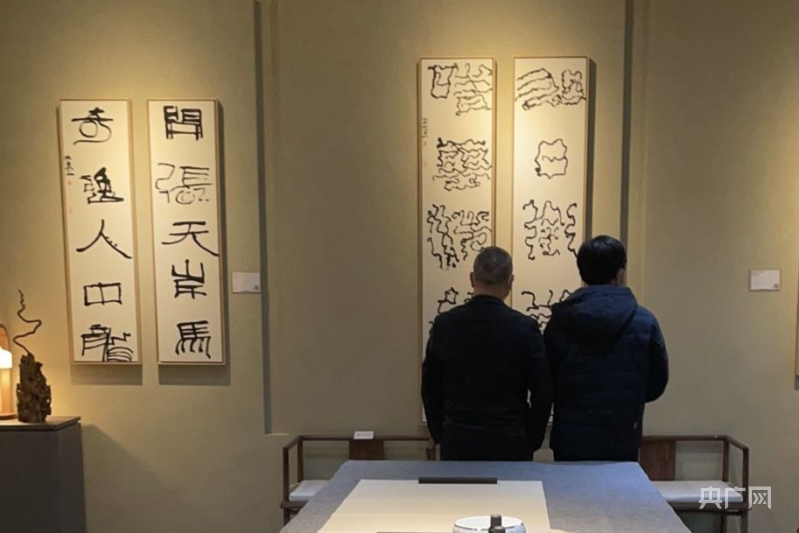 观众正在观看曾翔书法作品(央广网记者王雪薇摄)