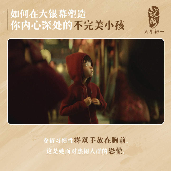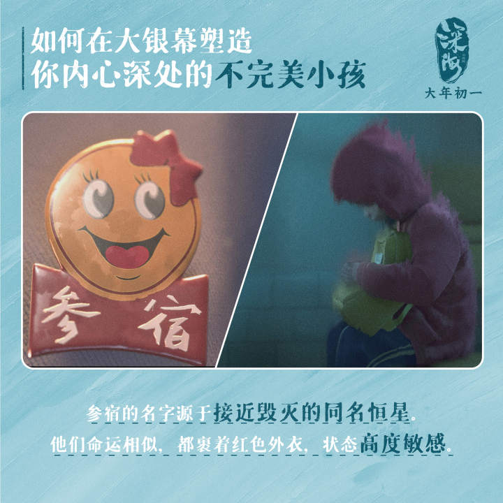 女主“参宿”的名字,由来于导演田晓鹏的日常小爱好:看星星。“南河三”和“参宿四”还有天狼星,是冬季天空中最亮的三颗星。不像田晓鹏导演之前作品里如“大英雄”般存在的大圣,《深海》女主参宿是一个敏感内向、再普通不过的小女孩。为打造这样一个“普通”到人群中的女孩,《深海》做了许多“不普通”的努力。为体现女主在并不“阳光”的生长环境与心理状况下形成的疲惫状态,影片在角色模型设计上,增加了与其年龄并不相符的眼袋、微微下拉的眼角、偶尔散漫无焦的双眸。在表演上,《深海》第一次让动画电影拥有“演技派”女主,让观众对剧情与人物的设定更加具有代入感:一方面,出于对自我的压抑和胆怯,女主经常展示出怯懦的状态,经常下意识地将伸出一半的手缩回、习惯性说“对不起”。参宿通过“肌肉颤动”、“痛出泪光”……使外表普通的自己拥有了天生的“大银幕演技”。