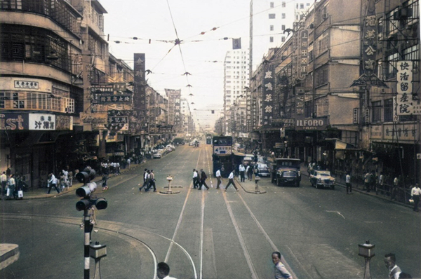 香港北角街景,左前侧为同顺兴,右侧有兰心照相馆