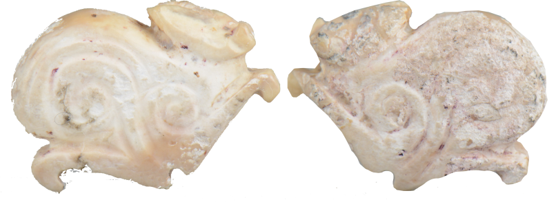 在南博展出的“大江万古流——长江下游文明展”中,有江苏无锡鸿山邱承墩越国墓出土的兔形玉佩。在中国古代的文献记载中,兔子乃“明月之精”(《典略》)、“王者盛德则至”象征的“瑞兽”(《瑞应图》),承载着祥瑞的美好寓意,从而赢得“玉兔”的美名。而真正意义上的“玉兔”,即以玉料为载体创作的玉器艺术品。春秋战国时期,中原地区的贵族墓葬中罕见兔形玉佩,然而在江南的吴越贵族墓葬中发现了具有商代、西周玉雕风格的兔形玉佩。此玉兔作奔跑状,上下贯穿一小孔。秦汉以降,这类片状兔形玉佩饰绝迹。