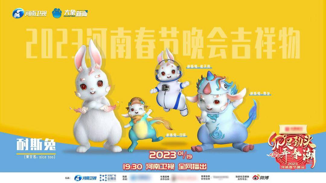 为全方位展现首都新风貌,2023年北京广播电视台首次开发设计年轻化吉祥物形象——代表着生机与活力的兔小蕊,面部置于花朵中,如同粉嫩的春天。2023年河南春晚也推出吉祥物耐斯兔,调皮可爱的耐斯兔不仅身披祥云,它还有青龙、白泽、航天员三种不同的装扮,每一个都寓意着新年里美好的祝福,新的一年愿大家都能Nice兔。