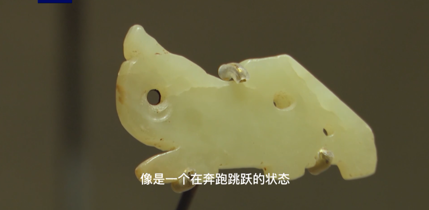 和兔子相关的文物就有不少,吸引孩子们在参观时热衷于“博物馆里找兔子”,也营造出浓浓的新春氛围,同时普及生肖文化、传播生肖故事。我国首座考古学科专题博物馆陕西考古博物馆中,就有一件龙山时代晚期的文物石峁玉兔。这件玉兔出土于石峁遗址的皇城台,长度约4厘米,双耳竖起、四肢伸展,像是正在奔跑跳跃,非常灵动,反映了石峁先民对生活的热爱和对美好的向往。在同一展区还展出了这件玉兔的原型蒙古兔跖骨近端,长5.5厘米、高1.1厘米,出土于石峁遗址外城东门址。