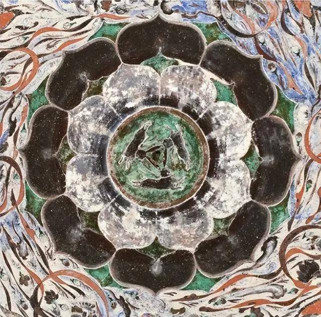 敦煌莫高窟第407窟的藻井图“三兔共耳图”,非常特别特别。窟顶中央绘制数层八瓣大莲花,莲花的四周云气纵横,八身飞天游于其中,最为奇特的是位于八瓣莲花正中的图案,三只兔子共用三只连在一起的耳朵,相互追逐,却永远也追不到对方……让画面显得格外动感。作为世界美术史上最神秘的图案,“三兔共耳图”成为艺术临摹与创作的源泉。