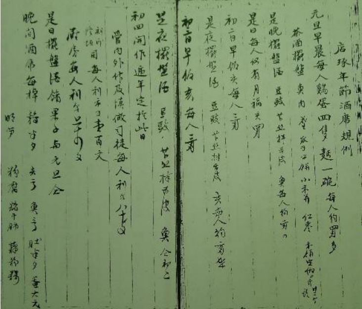 上揭《略要杂字》中的这段文字,记述了从正月初一到十五徽州乡村的喜庆场景,作为启蒙读物中的通俗常言,自然是呈现了岁时节俗一般的情形。而光绪二十三年(1897年)前后的《尚义堂常规》抄本,则从一个独特的角度,反映了婺源宗族内外的年节习俗惯例。