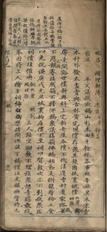 ……里姚仆(九男、训、旺孙)等乘开豁世仆新典,……庚戌元旦,里新屋仆,不至祠叩贺,鼓吹亦不到,族众在祠,愤往催唤姚九男、姚训、姚旺孙。三人踞坐酣饮不理,族众怒责,胆敢抗拳,因将三人擒至祠缚禁拷问,……至初八日,姚九男等央新老屋各仆,齐至本仁祠跪求,愿各具遵依,照前服役。初十日,始释放。