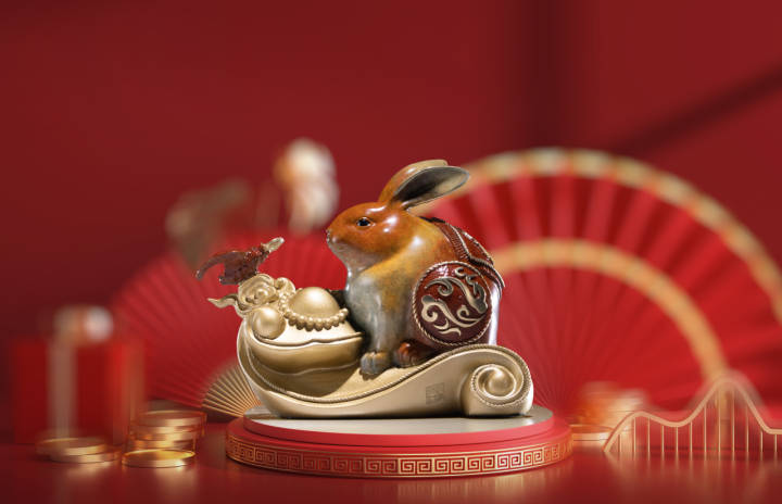 这几只兔年生肖贺岁吉祥物,出自“铜雕父子”中国工艺美术大师、国家级非遗铜雕技艺代表性传承人朱炳仁,和浙江省工艺美术大师、浙江省非遗铜雕技艺代表性传承人朱军岷之手。而今年也是继2016年丙申猴年后,他们的贺岁生肖吉祥物第八次登上央视除夕特别节目。