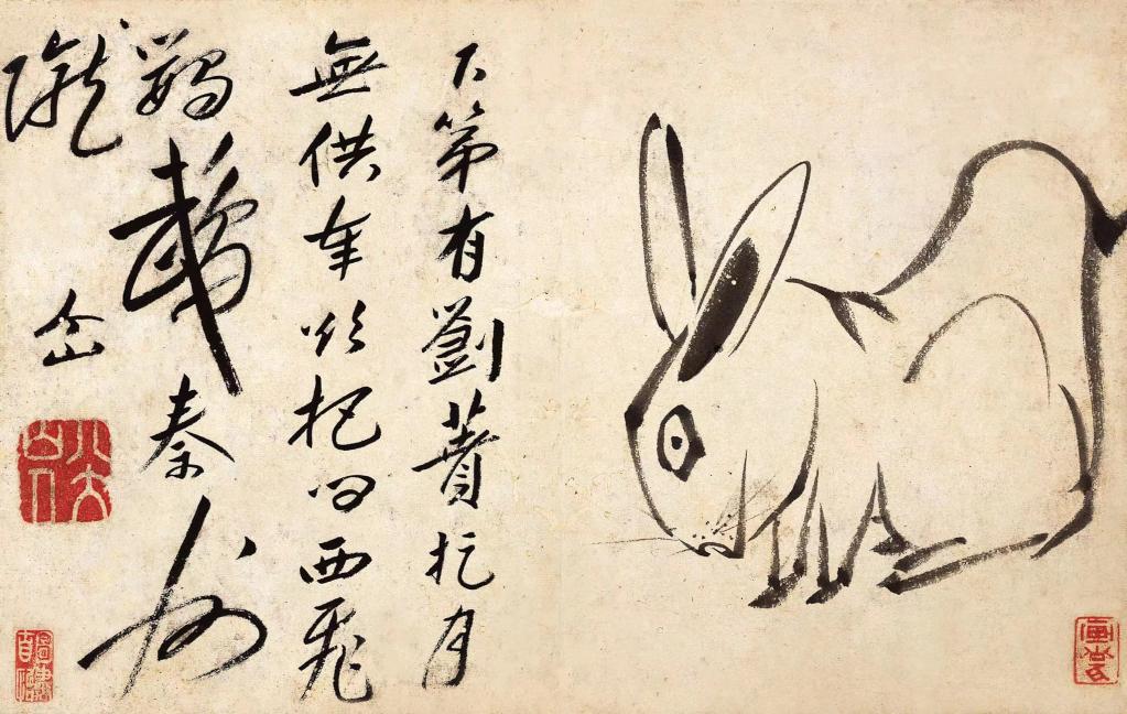 兔子常给人们圆润可爱的印象,但你见过“方”兔子吗?明末清初画家“八大山人”朱耷的《个山杂画册》中就有一只,寥寥几笔,像极了儿童简笔画,兔子的轮廓和眼睛都是方的。