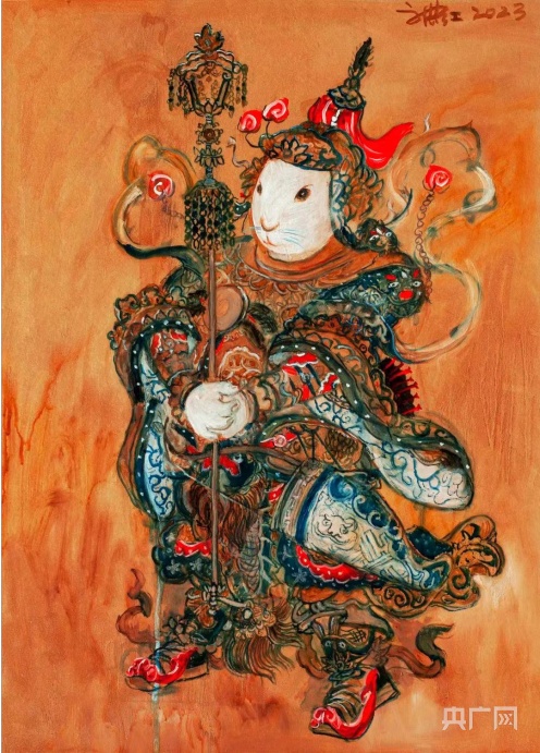 高洪红作品《兔门神》(央广网发中国同泽书画研究院供图)