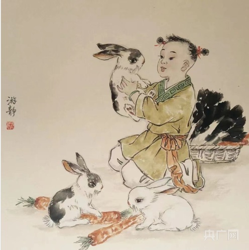 游静作品《童趣》(央广网发中国同泽书画研究院供图)