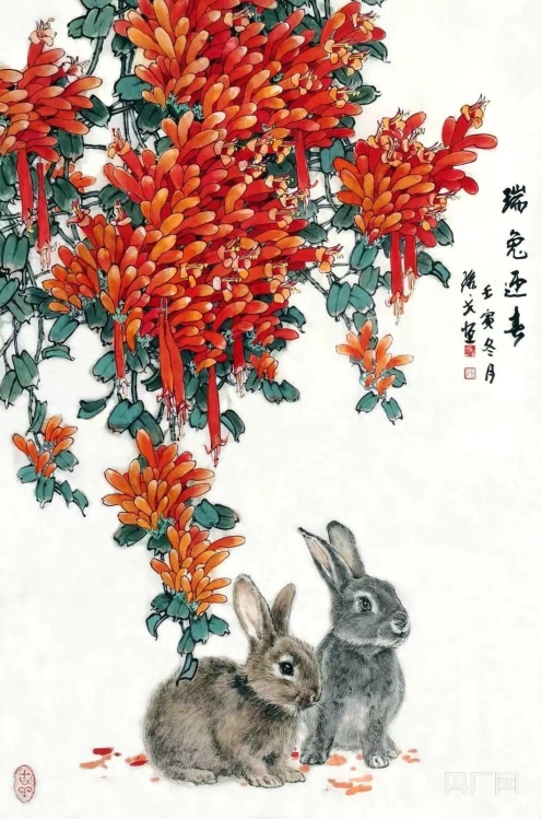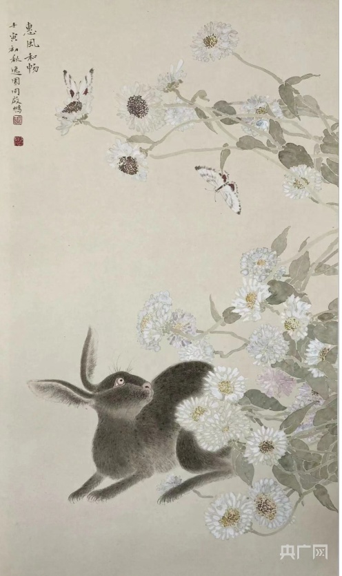 孙戈作品《瑞兔迎春》(央广网发中国同泽书画研究院供图)