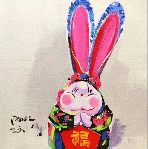 李彤彤作品《玉兔贺春》(央广网发中国同泽书画研究院供图)