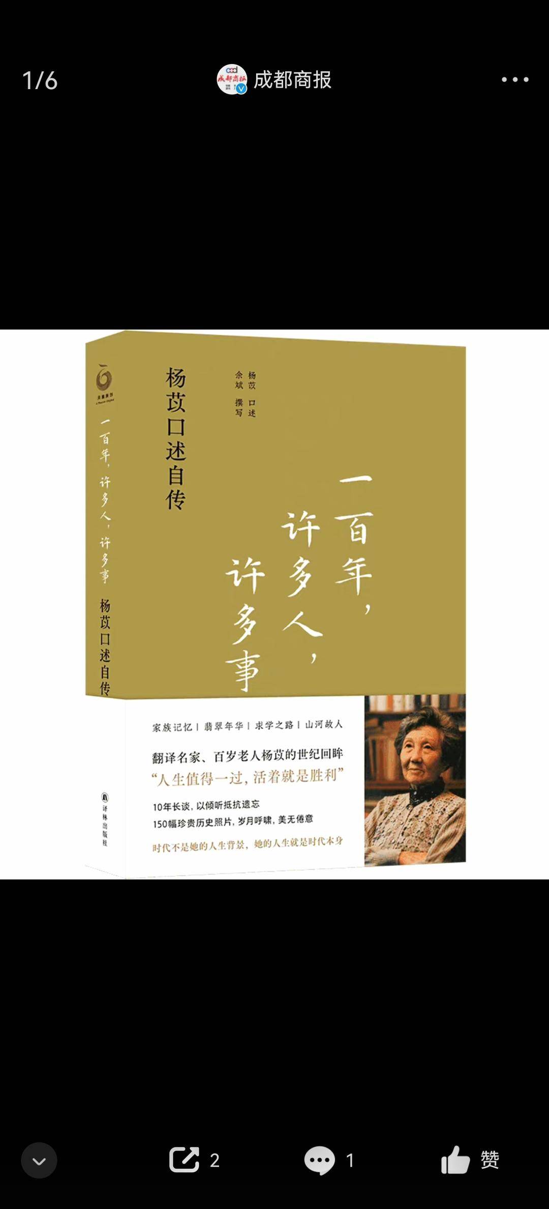回望杨苡先生的一生,一面是在“等候与盼望”中坚定信心,一面是“勇气与努力”帮助她在紧要关头下定决心做出改变。一百年风风雨雨,杨苡先生在口述自传中回望波澜壮阔的一生,回望时代与个人的改变,自信而坚定地总结百年生命旅途说:“人生值得一过”。