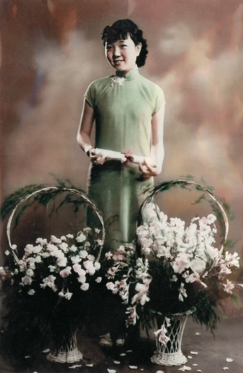 杨苡家中摆放着一张她17岁从中西女校毕业时的照片,带着青春少女的稚气与粉嫩。照片里她穿着十分漂亮的绿色旗袍,那阵子参加毕业典礼、晚宴,都要穿这一件。还有17岁时在“美丽照相馆”照的照片。当年老板没经过她允许就把照片放大了搁在橱窗里抛头露面。她一开始不知道,同学看见了,还开她的玩笑,为此母亲很不高兴。