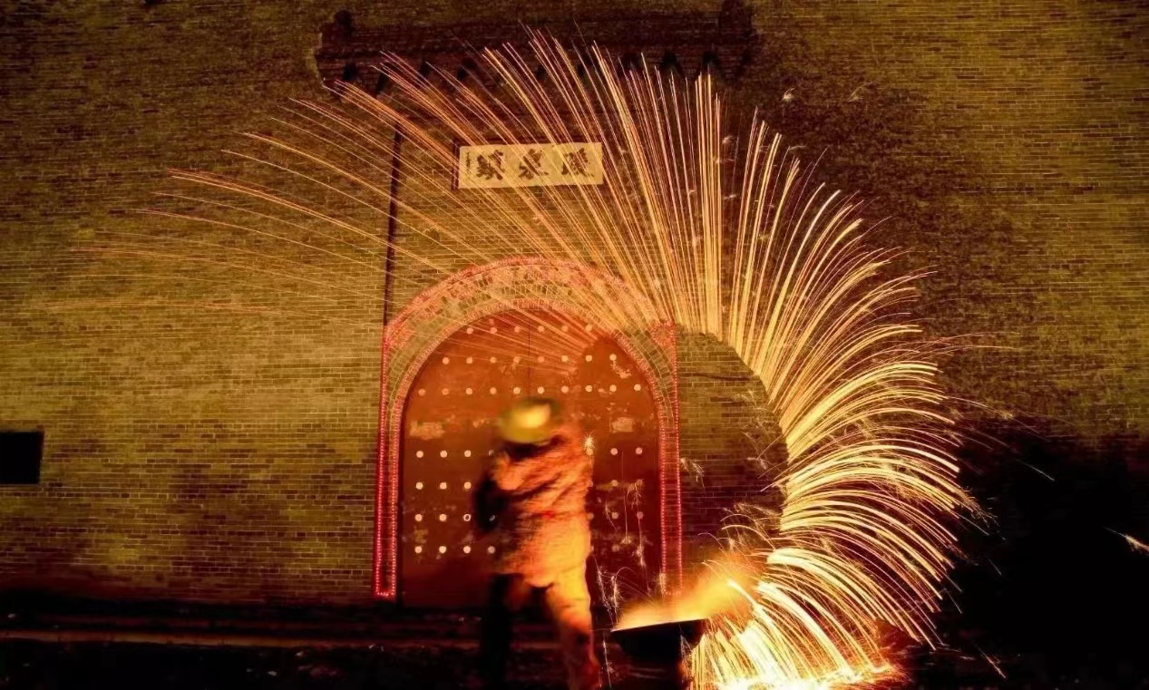 傍晚时分,国家级非遗表演“打树花”开场了,零下二十多摄氏度的户外,座无虚席,随着一句“打树花啦”,匠人们将滚烫的铁水泼洒在古老的城墙上,瞬间火花四溅,犹如天降星雨,又似火树银花,璀璨而壮观。这铁与墙的碰撞,更是现代与历史的交融。