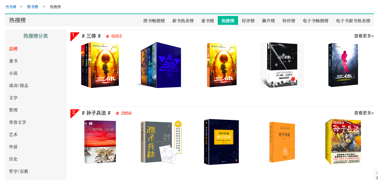 采访中,当当网介绍,目前《孙子兵法》是当当古籍销售榜第一名;各种版本、注本的《孙子兵法》也在热搜榜中跻身排行榜前列;在最近七天的销售热榜的top20里,有5个版本的《孙子兵法》。而2021,2022年全年榜单里都没有《孙子兵法》,只有在2019年年度榜单中出现过一次《孙子兵法》。由此,影视剧的带动效应可谓显著。