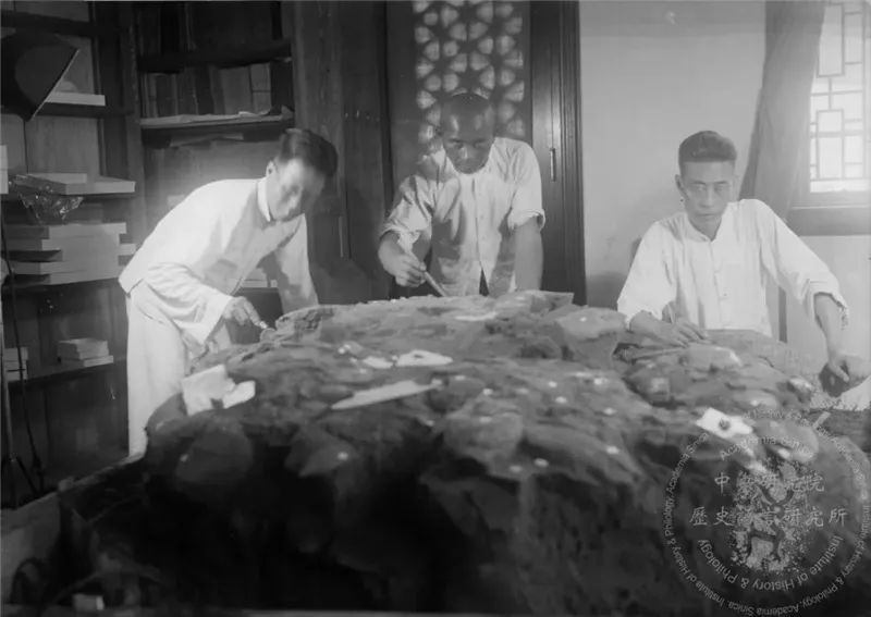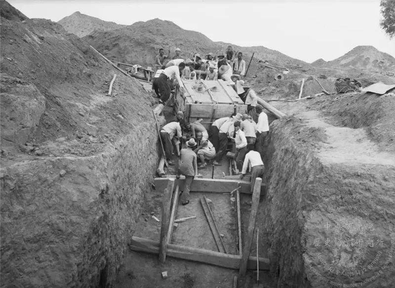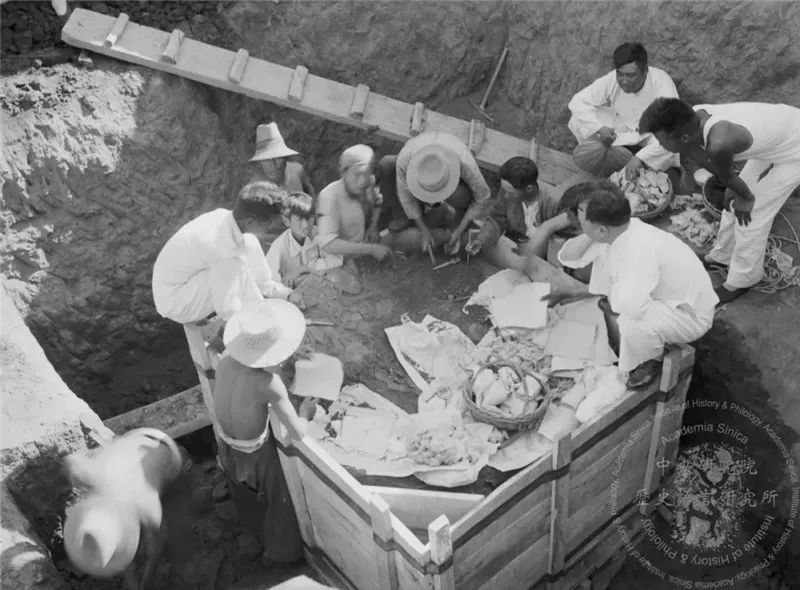由于这坑甲骨片太多,而且当时的天气是6月份,炎热,容易下雨,再一个社会治安不好,经常有盗匪出没。这样石璋如和王湘他们商量了一下,就把一坑甲骨连土带甲骨片一块儿套箱,弄了一个很大的木箱,把他们套出来,再把整体出土,拉到南京在室内进行仔细的清理。
