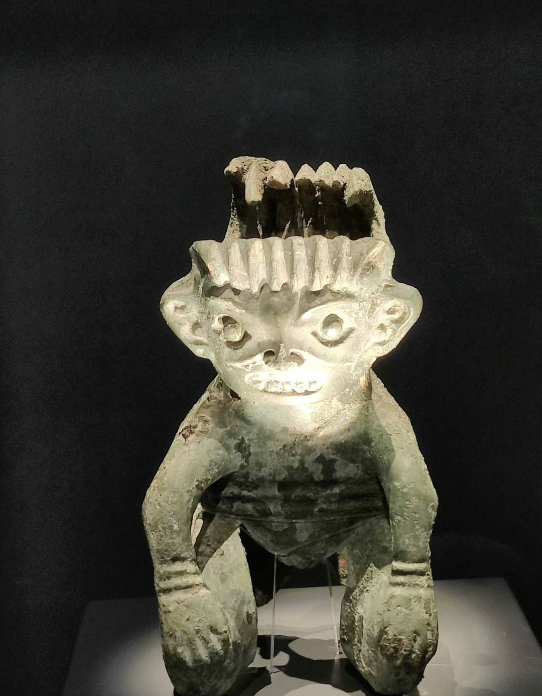 跪坐青铜小人系上“安全带”。图据三星堆博物馆