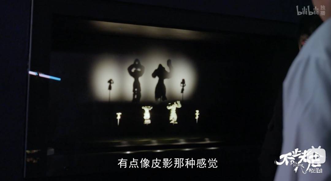 固定在指甲上的青铜文物,在灯光下展现别样的美。图据纪录片《不止考古·我与三星堆》