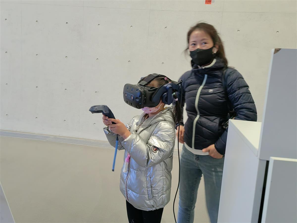来自汉阳的四年级学生小朱,在他爷爷指导下,戴上虚拟现实设备,操控着手柄,就进入了由艺术家设计的一个虚拟世界。“我被无限的光点包围了,还听到了各种各样不同的声音……”小朱兴奋地说。