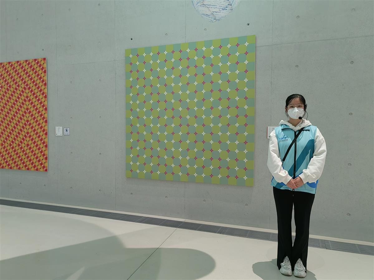极目新闻记者也在现场看到不少流动的“蓝马甲”,他们是志愿者。来自陕西师范大学的大二学生严雨婷告诉极目新闻记者,她春节期间每天都在馆里做志愿服务。“我是学美术专业的,又是武汉本地人,放寒假回武汉后,就拉着几名同学一起报名来武汉美术馆(琴台馆)做志愿者。”严雨婷说,刚开始来这个馆时,觉得很震撼,春节期间,场馆每日都有很多观众,让她看到了武汉人对艺术的热爱。“还有很多专业观众,专门冲着一些艺术家的作品而来。有时候,我也会和他们交流观看作品的感受,自己也能学到很多东西。”