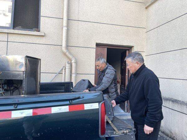 为了这场电影,蔡华平下午3点多在家吃过“晚饭”后,便来到位于吴宁街道的市电影放映有限公司,从仓库里拿出幕布、音响、激光投影仪等设备,一一装上车,赶往17公里外的里宝塘村。