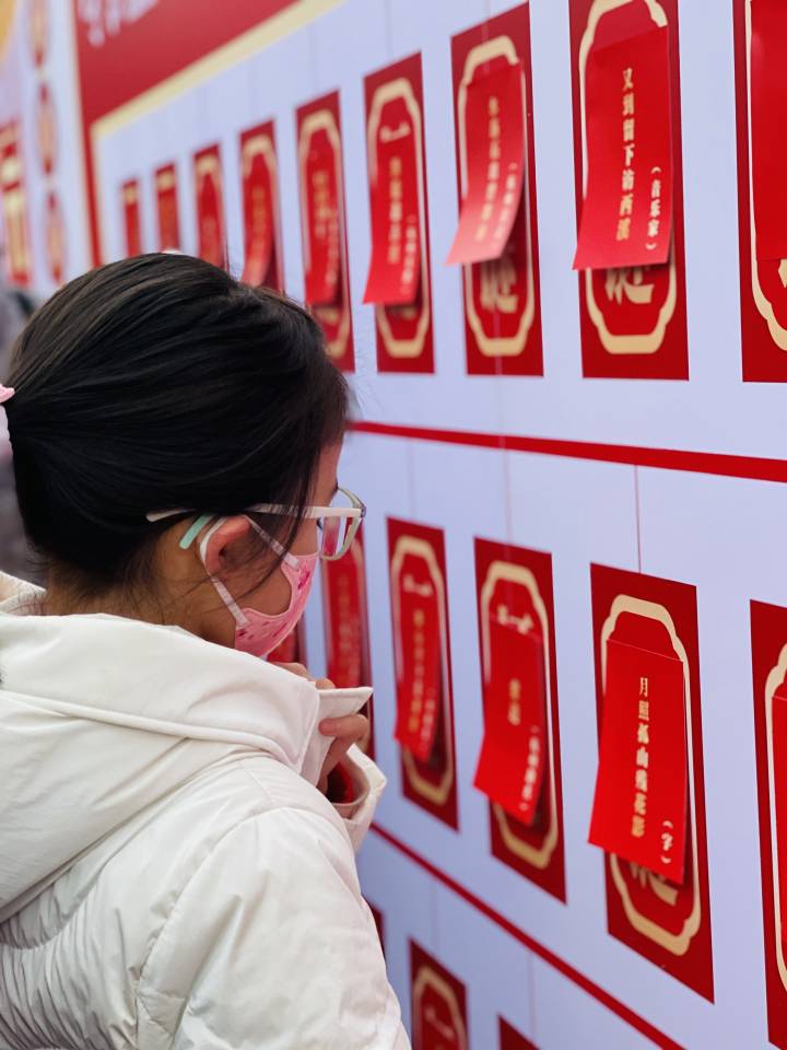 猜灯谜将元宵活动的热烈氛围推上新高峰。谜面有趣通俗,人物文学生活地理无所不包,既具娱乐性,又具知识性。